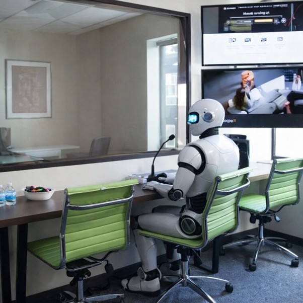 Figure 1: AI-generated image of a robot observing a usability test session.
