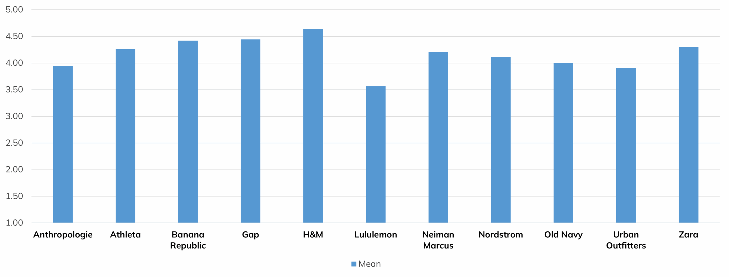 | Anthropologie | 3.94 | 4.00 | 18 |